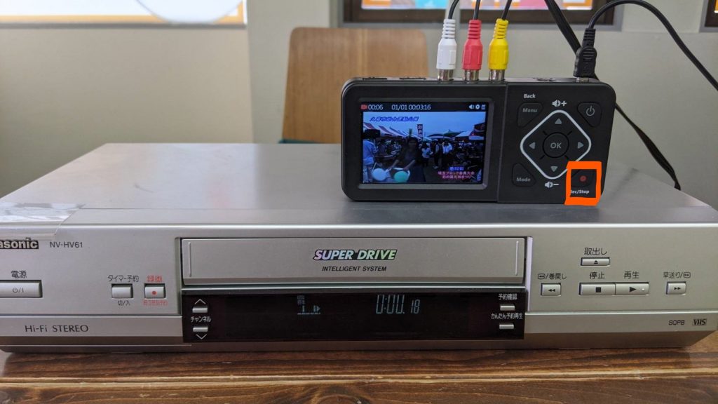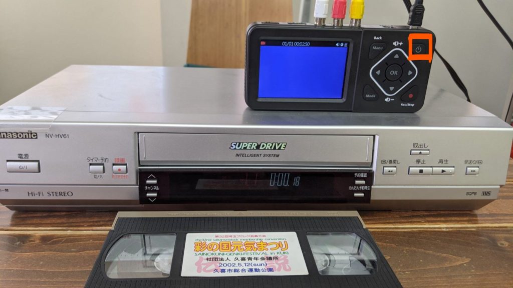 その後、ビデオテープを入れて再生ボタンを押すだけです。