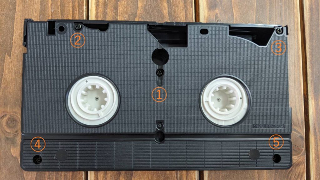 ビデオテープは5本のネジで止まっています。