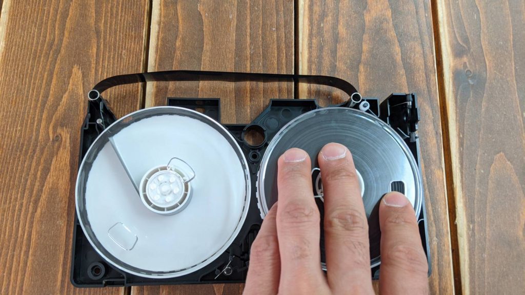 ①ビデオテープを開けてテープを取り出す