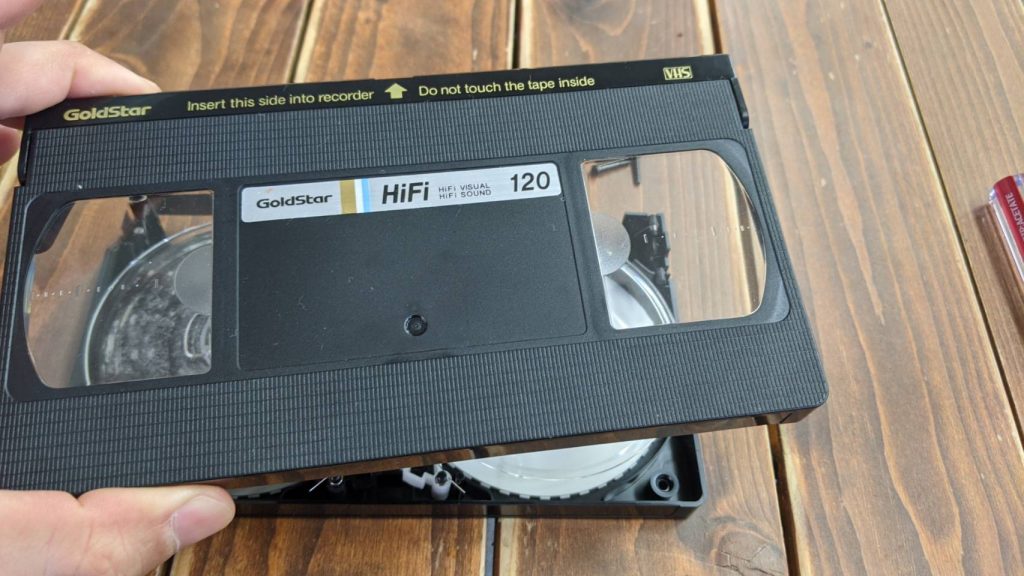 開ける際は必ず表面から開けてください。(VHS限らず全てのビデオテープで行う)