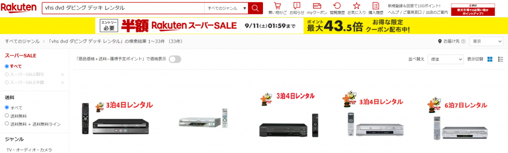 実は楽天でもビデオデッキのレンタルができます!
